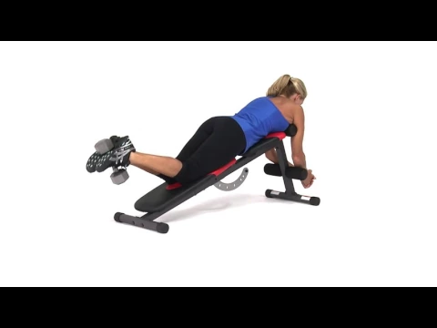 Houdt je heupen op het bankje en je kuiten ontspannen terwijl je je hielen naar je billen trekt, dit doe je totdat je kuiten loodrecht op de vloer staan.