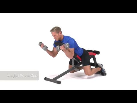 Er zijn veel variaties van oefeningen met dumbbells om je biceps te trainen. Een van deze variaties is de Angled Prone Curl. De benodigdheden voor deze oefening zijn twee dumbbells en een fitness bankje. Met deze oefening traint je specifiek twee spiergroepen in je biceps. Het voordeel van deze oefening is dat je puur de spieren in je biceps traint omdat je op het schuine fitness bankje ligt. Je loopt hiermee niet het risico dat je gebruik kunt maken van de onderrug, dit gebeurt vaak als je oefening staand uitvoert en te zware dumbbells pakt. Je gebruikt dan je rug om de dumbbells als het ware omhoog te gooien wat vaak tot blessures lijdt.